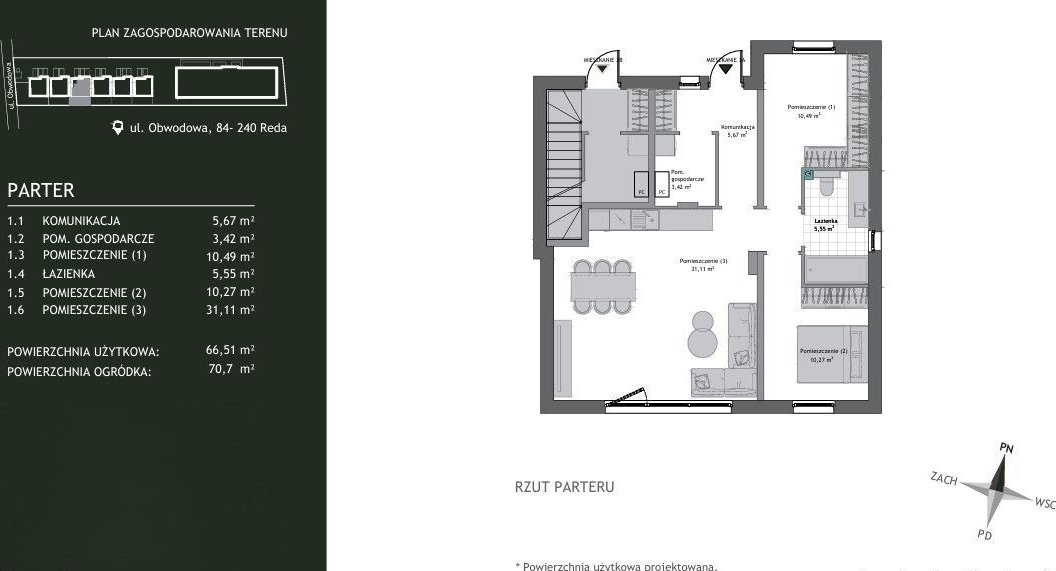 Pow. użytkowa: 66,51m2 / pow. ogródka: 70,7 m²