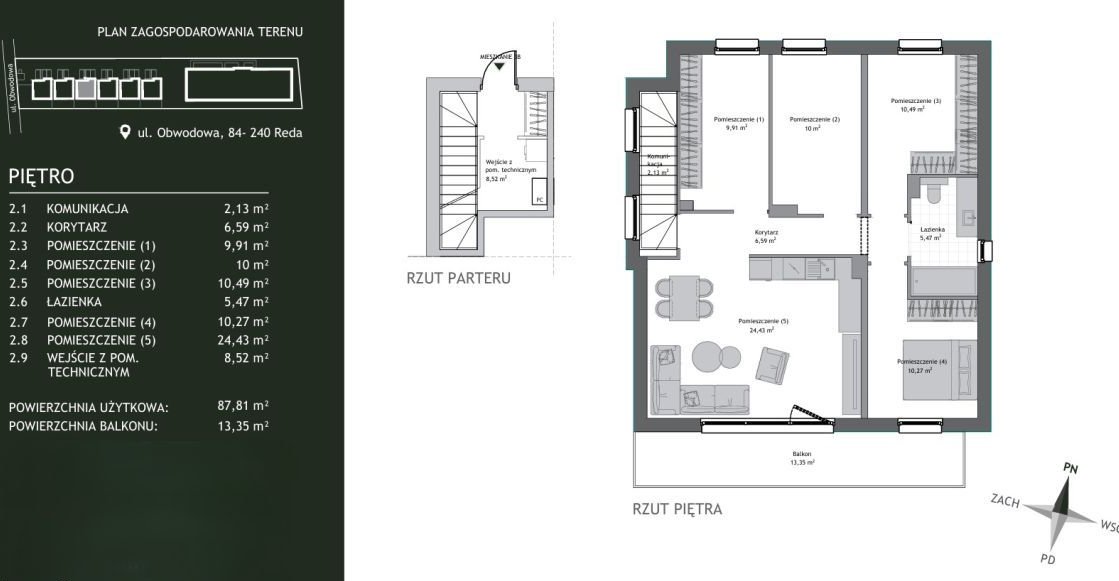 Pow. użytkowa: 87,81m2 / pow. tarasu: 13,35m²