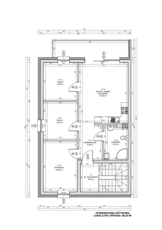 Apartamenty czteropokojowe o powierzchni użytkowej 68 m2, położony w budynku mieszkalnym jednorodzinnym.