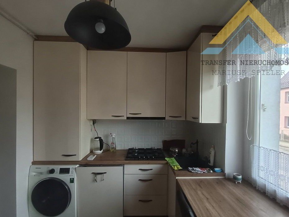 Ofertą sprzedaży jest mieszkanie dwu pokojowe, na parterze o powierzchni użytkowej 47,33 m2 w skład którego wchodzi jeszcze kuchnia, łazienka i przedpokój , do mieszkania przynależy piwnica, pomieszczenia gospodarcze oraz mały ogródek. Mieszkanie jest bezczynszowe , budynek w części mieszkalnej ocieplony, ogrzewania gazowe , okna PCV, instalacje miedziane , kuchnia umeblowana w cenie ( za wyjątkiem lodówki i pralki) , łazienka nowoczesna kompletna , na podłogach panele , ściany gładzone. Budynek położony jest w spokojnej części miasta , dojazd droga asfaltową.