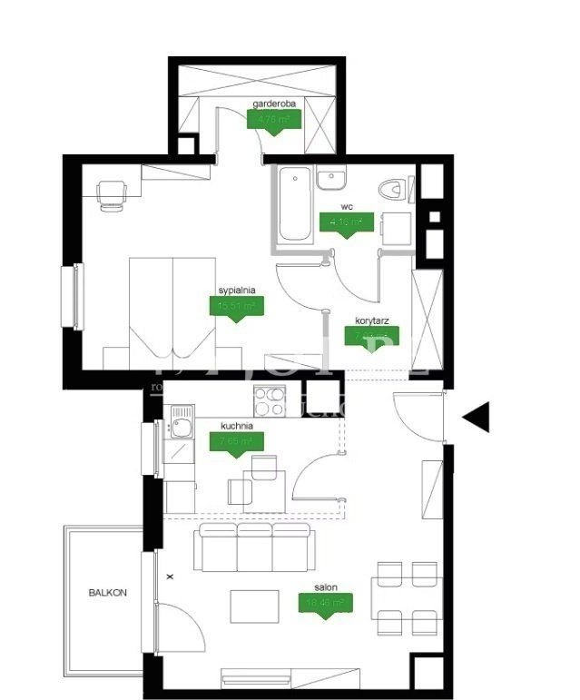 Pełny metraż pomieszczeń przedstawia rzut mieszkania dostępny w galerii.