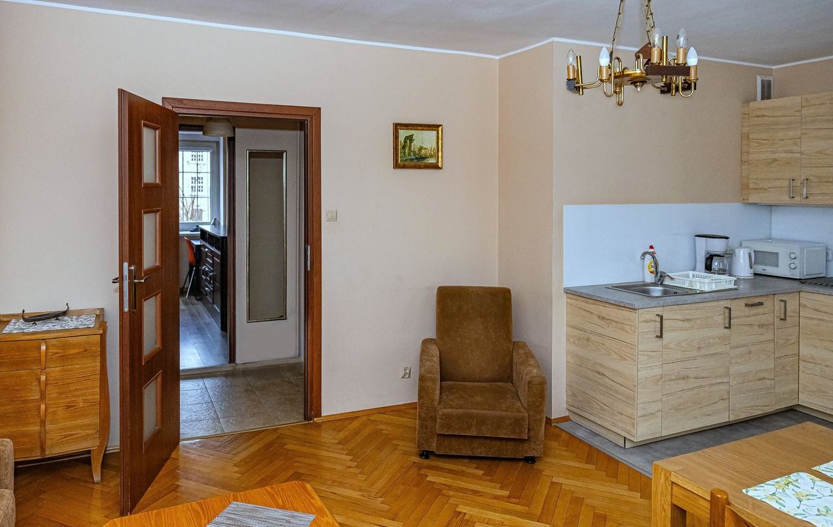 (W księdze wieczystej lokal widnieje jako 2-pokojowy, obecnie zaaranżowany na 3 pokoje, co zwiększa jego funkcjonalność i potencjał inwestycyjny.)