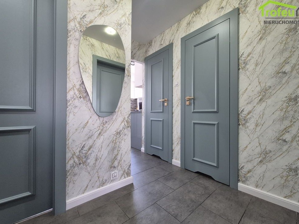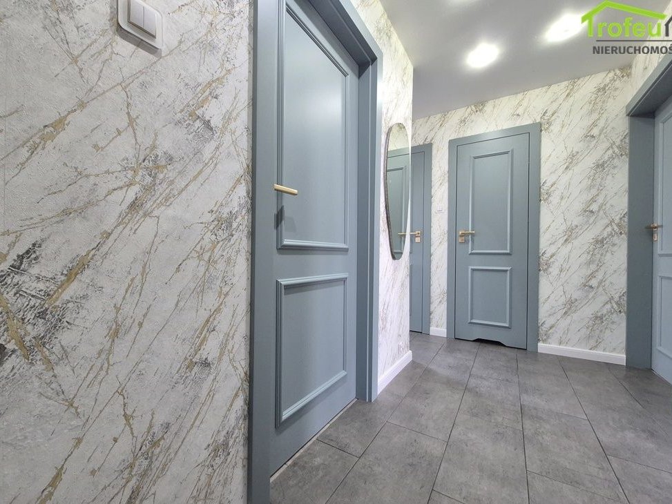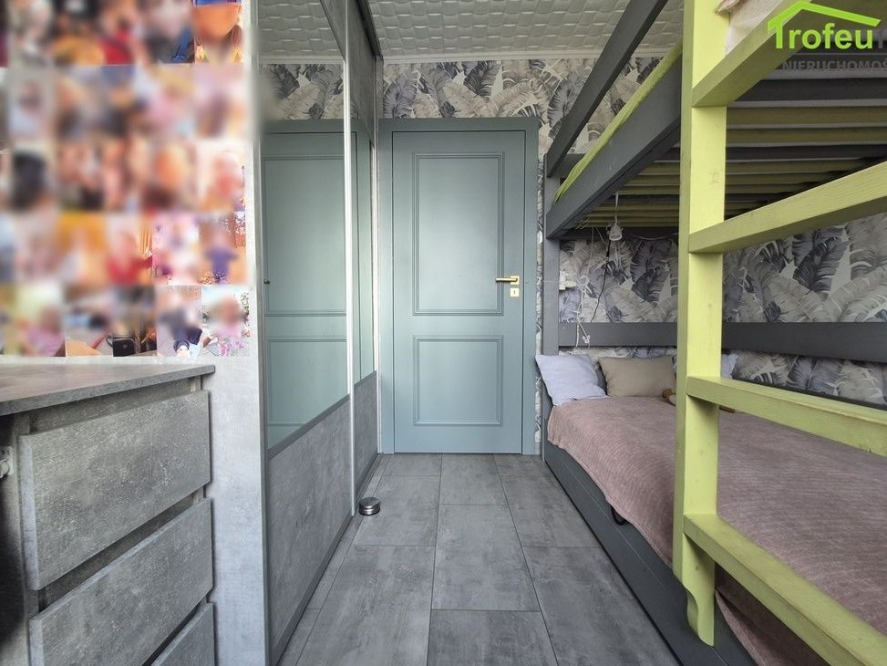 Również w mniejszym pokoju oraz przedpokoju zastosowano bardzo estetyczne tapety, które podkreślają styl mieszkania.