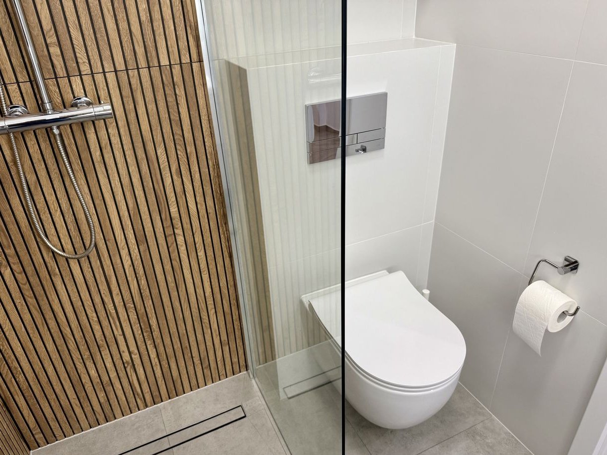 nowoczesna łazienka z kabiną typu walk-in