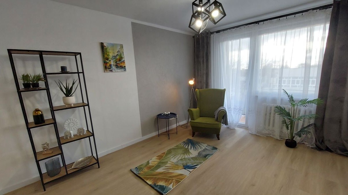 Położenie mieszkania w Centrum zapewnia łatwy dostęp do najpotrzebniejszych miejsc . W okolicy bardzo dużo miejsc parkingowych wzdłuż bloku. W najbliższej okolicy przedszkole, szkoła, Dino, liczne sklepy, stacja PKP i malownicze tereny zielone.