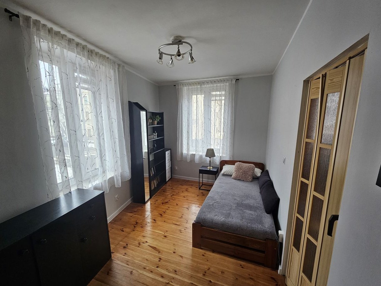 Mieszkanie składa się z trzech pokoi, łazienki oraz oddzielnego WC. Wszystkie okna w mieszkaniu wymienione na plastikowe, dodatkowo w dwóch pokojach we wrześniu 2025 roku zostały wymienione okna na trzyszybowe. We wszystkich pokojach został podwieszony i opuszczony sufit, pierwotna wysokość pomieszczeń to około 310cm co w przypadku remontu daje ogromne możliwości aranżacyjne.