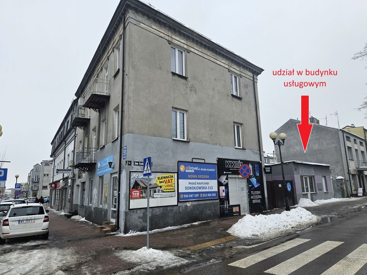 Kupujący mieszkanie nabywa również udział w gruncie oraz udział w budynku usługowym znajdującym się na tej samej działce (budynek zaznaczony na zdjęciu).