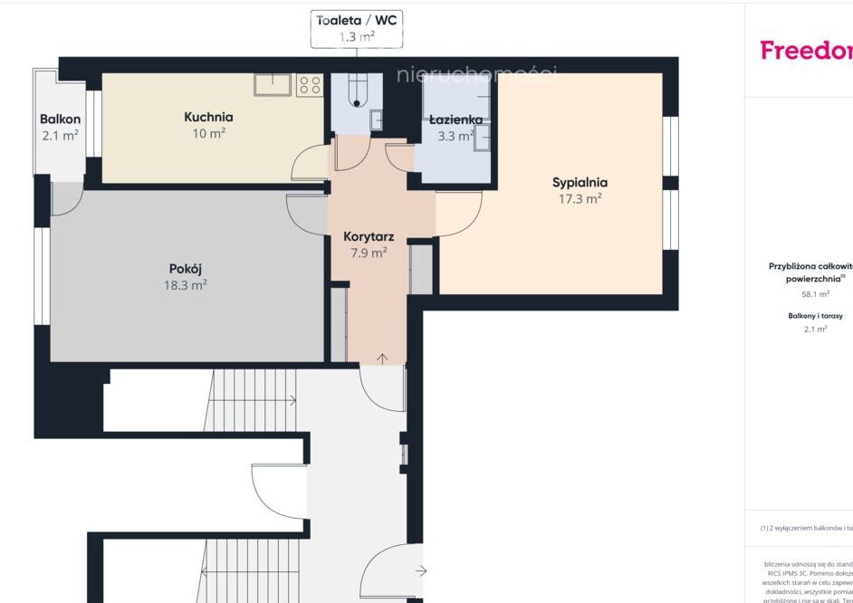 "Właścicielem ogłoszenia wraz z jego elementami jest Freedom Nieruchomości Sp. z o.o. lub podmioty współpracujące. Wszelkie prawa zastrzeżone. Kopiowanie, rozpowszechnianie oraz korzystanie z niniejszych materiałów w jakikolwiek inny sposób wykraczający poza dozwolony użytek określony przepisami ustawy z 4 lutego 1994 r. o prawie autorskim i prawach pokrewnych (Dz. U. 1994, nr 24 poz. 83 z późn. zm.) bez pisemnej zgody Freedom Nieruchomości Sp. z o.o. lub podmiotów współpracujących jest zabronione i może stanowić podstawę odpowiedzialności cywilnej oraz karnej.