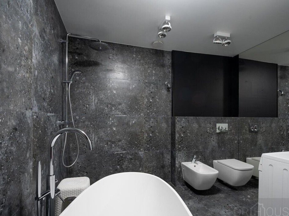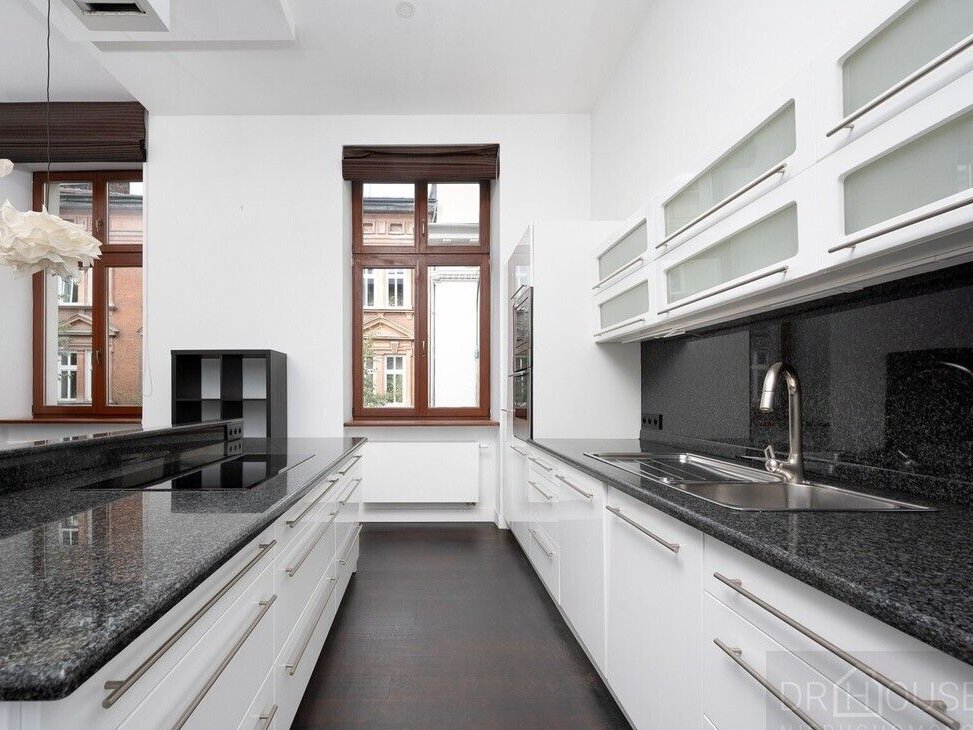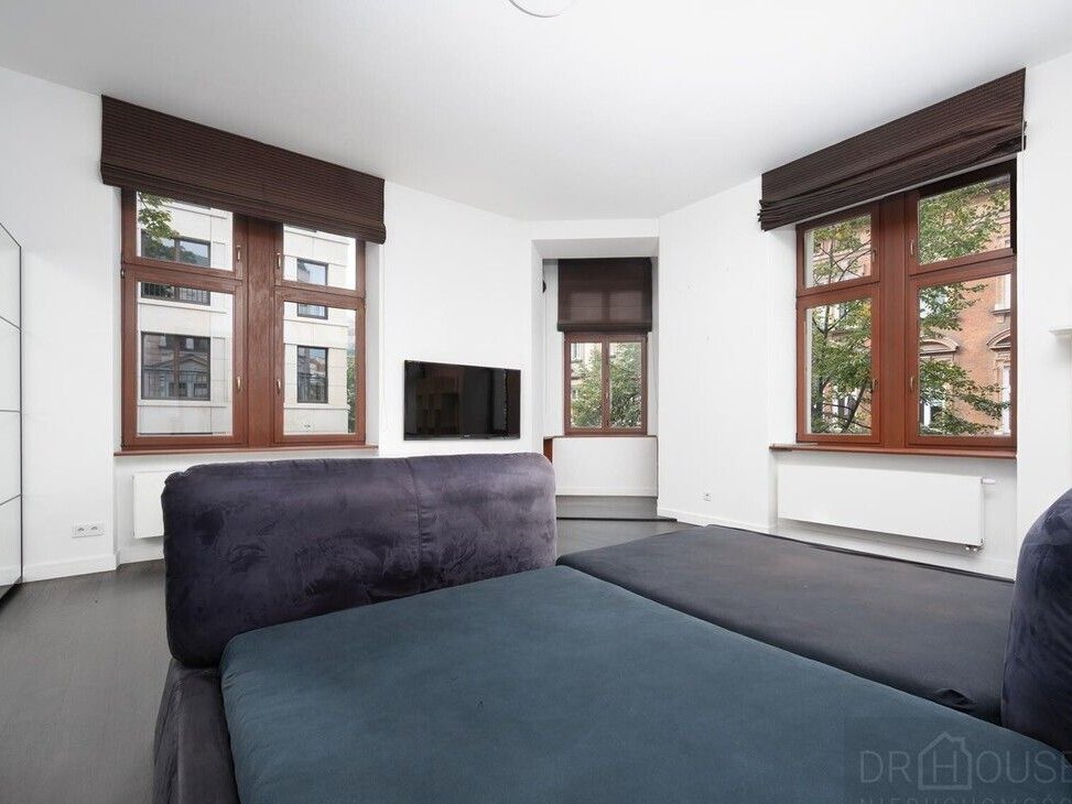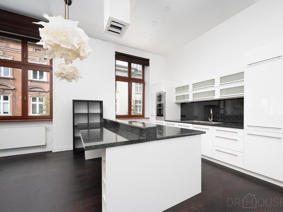 Kuchnia zabudowana jest meblami na wymiar z granitowym kamiennym blatem i AGD: płytą indukcyjną, piekarnikiem, mikrofalówką, zmywarką, lodówką i okapem. Ściany wykończone są gładzią z malowaniem, podłogi z litego drewna. W dalszej części znajduje się część sypialniana z 2 dużymi łóżkami oraz pojemną szafą. Łazienka wyposażona jest w prysznic typu walk-in, wannę wolnostojącą, 2 umywalki, toaletę, bidet i pralkę. Do mieszkania wchodzi się z prywatnego przedsionka. Ogrzewanie i ciepła woda z kotła gazowego z zasobnikiem. Czynsz do Wspólnoty wraz z funduszem remontowym wynosi 400 zł, dodatkowo płatny jest prąd, gaz, zimna woda i ścieki wg zużycia.