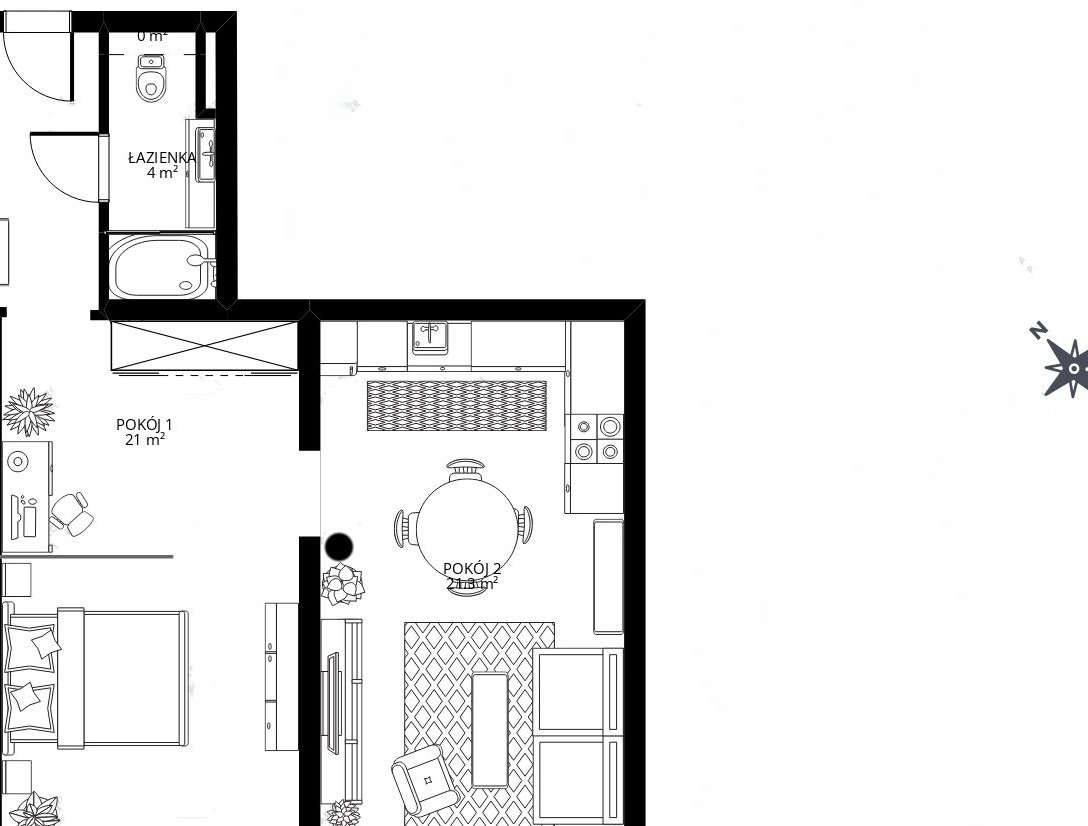 pokój 2 (kuchnia, jadalnia, strefa wypoczynku) 21m2