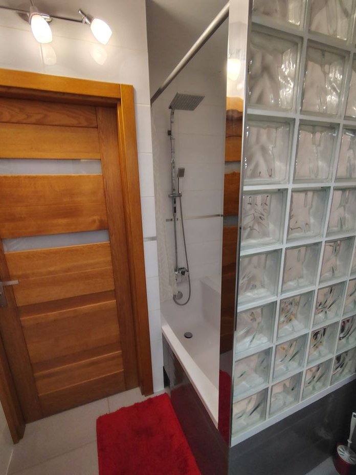 Łazienka – 4,6 m² (zabudowa, wanna oraz prysznic),