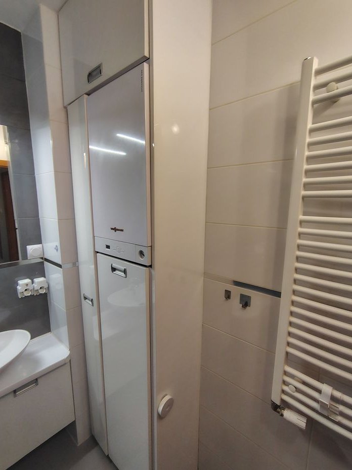 ogrzewanie gazowe – kocioł z zamkniętą komorą spalania + termostat pokojowy (Viessmann),