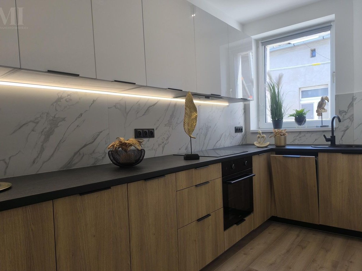 Wnętrze mieszkania zostało poddane generalnemu remontowi, który obejmował modernizację instalacji elektrycznej i hydraulicznej, a także montaż nowych ścian i podłóg. Mieszkanie jest
