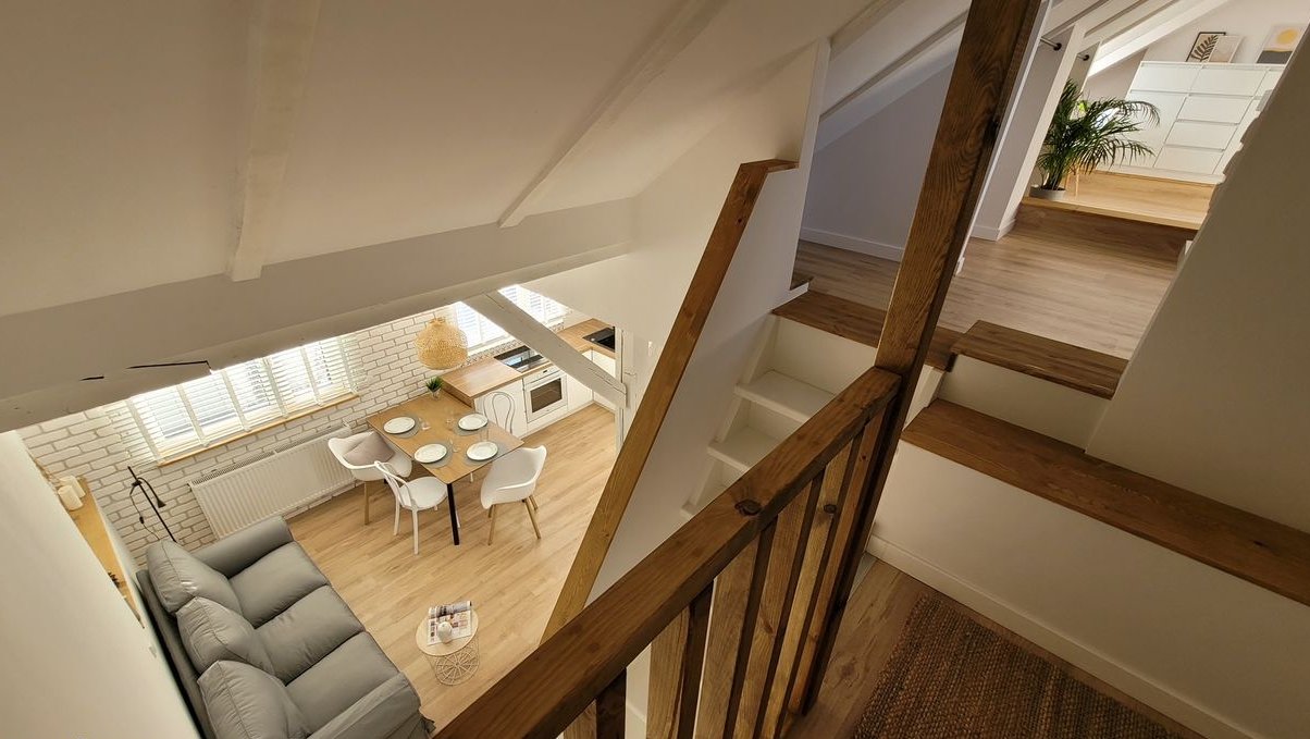 jedno z mieszkań posiada dodatkową przestrzeń na antresoli