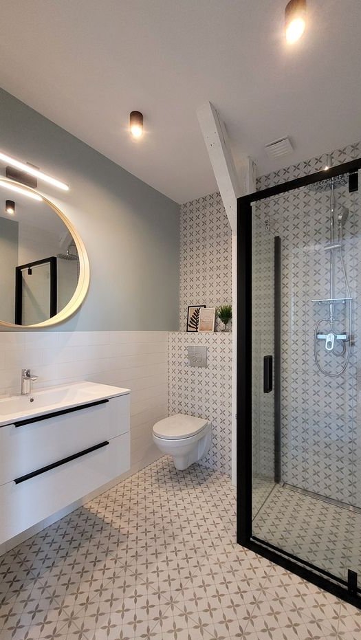łazienkę z WC i prysznicem