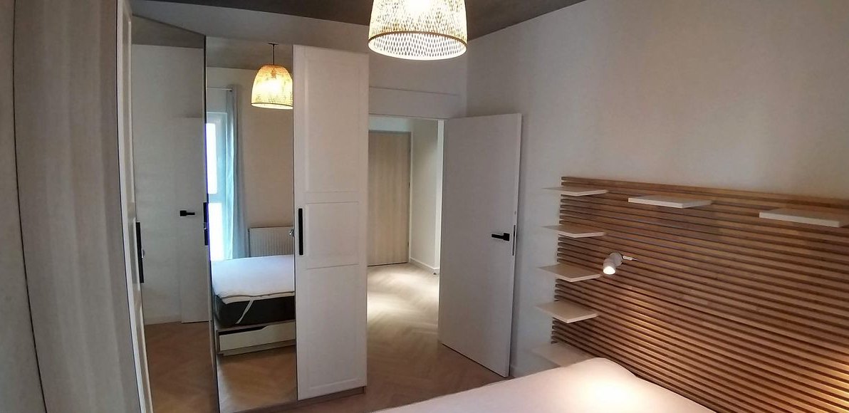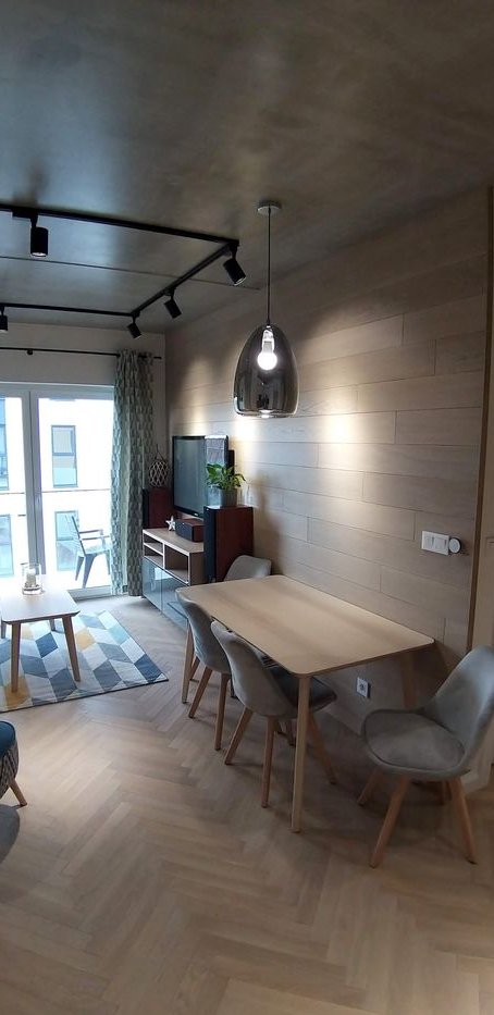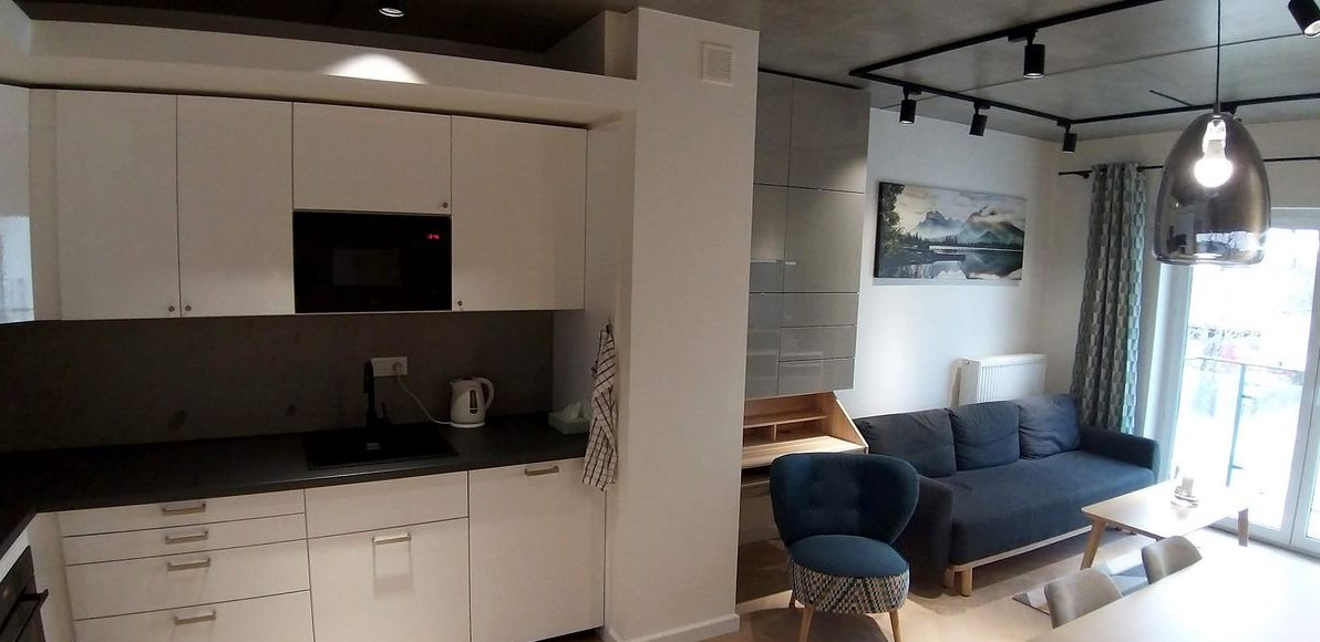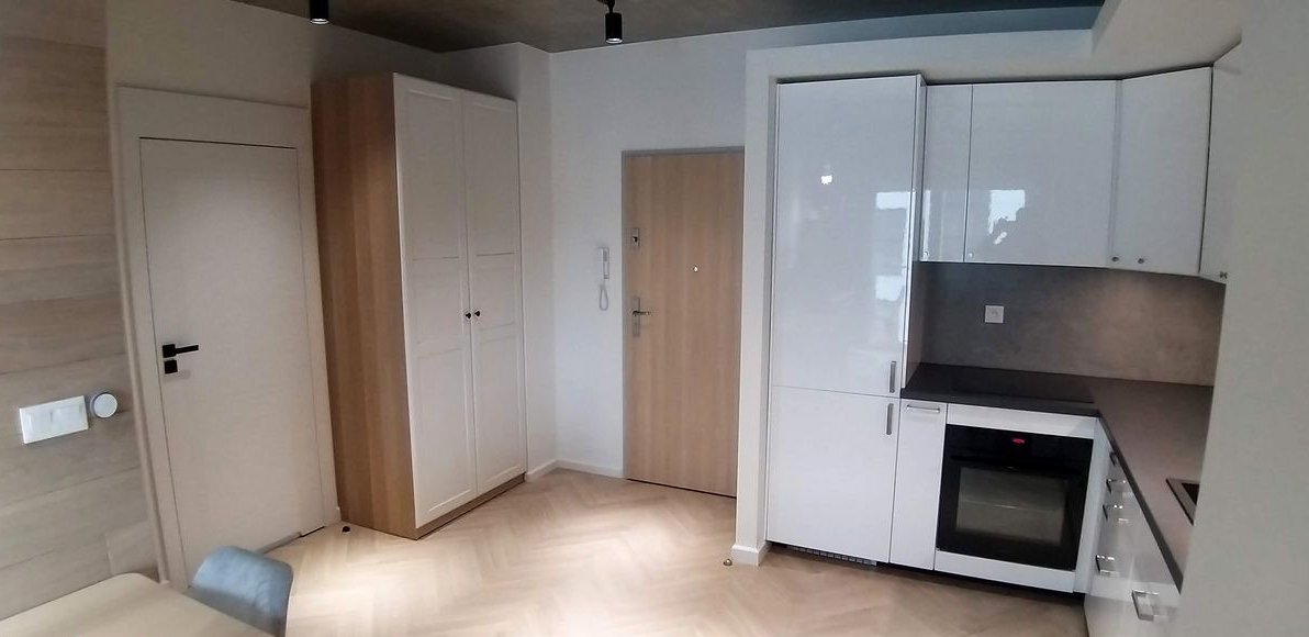Polecam na sprzedaż , przestronne mieszkanie o powierzchni 40 m² w bloku na osiedlu JA_SIELSKA, w jednej z ładniejszych dzielnic Poznania – Podolany. Osiedle jest bezpieczne, monitorowane, na terenie znajduje się plac zabaw oraz miejsca parkingowe dla gości. Możliwość otwierania bramy wjazdowej oraz garażowej z telefonu komórkowego. Blok wykończony w wysokim standardzie. Na korytarzach beton architektoniczny. Mieszkanie jest jasne składa się z przedpokoju, pokoju z aneksem kuchennym, sypialni oraz łazienki. Jest wykończone w najwyższym standardzie, sufity w mieszkaniu beton architektoniczny. Na posadzkach parkiety lite dębowe – jodełka klasyczna (Jawor Parkiet). Na ścianie w salonie deski dębowe. Wyposażenie mieszkania: przedpokój z szafą na kurtki, płaszcze i buty. Salon: kanapa, fotel, mały stolik, stół do spożywania posiłków, wisząca szafa pod nią sekretarzyk do pracy przy komputerze, telewizor pod nim szafka oraz głośniki. Z salonu wyjście na balkon ze stolikiem i dwoma krzesłami. Drugi pokój to sypialnia z dużym podwójnym łóżkiem 180 cm szerokości wyposażonym w drewniany zagłówek z półkami oraz oświetleniem i zabudowaną narożnikową przestronną szafą. Kuchnia: szafki kuchenne, lodówka, płyta indukcyjna, piekarnik, zmywarka oraz mikro w zabudowie. Łazienka: przestronny prysznic 90 cm x 180 cm, pralka zabudowana w dużej szafie, armatura Villeroy & Boch. Nieruchomość mieści się na II piętrze, w bloku jest winda oraz hala garażowa, w której do mieszkania należy szerokie pojedyncze miejsce parkingowe w kształcie trójkąta. Bez problemu zaparkuje auto oraz motocykl lub rowery. Mieszkanie wykończone zostało w styczniu 2024 r.