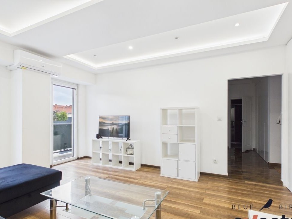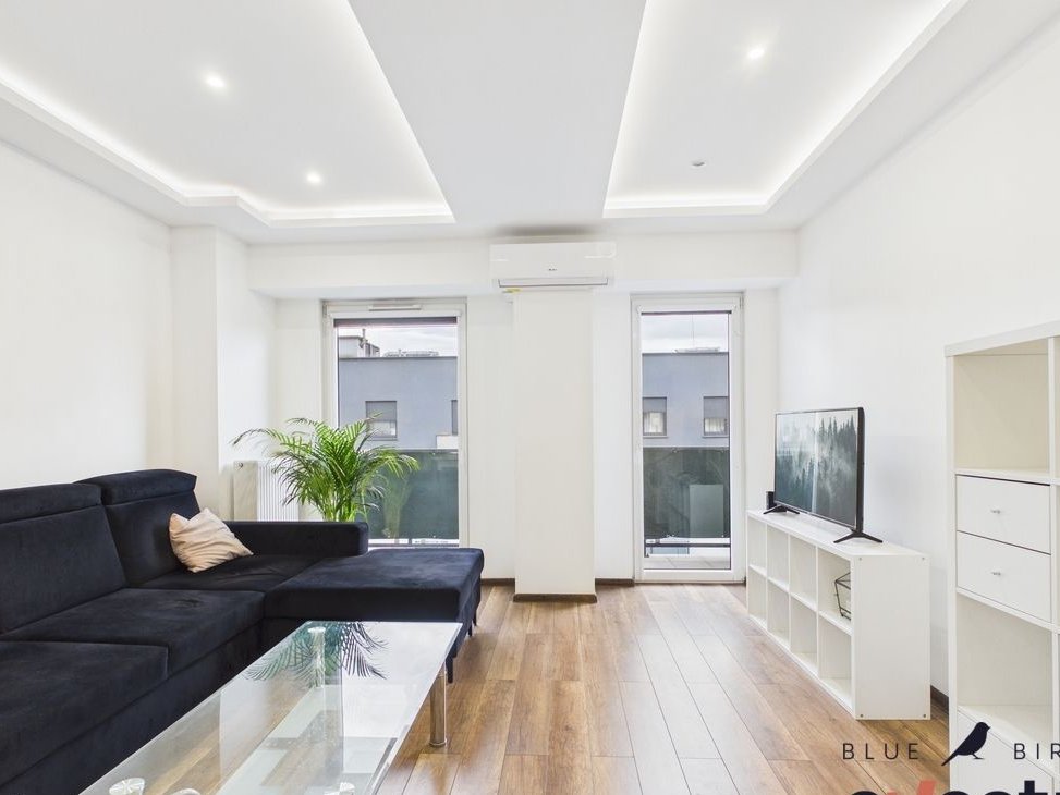 Przestronny salon z wyjściem na balkon