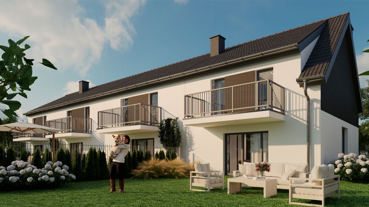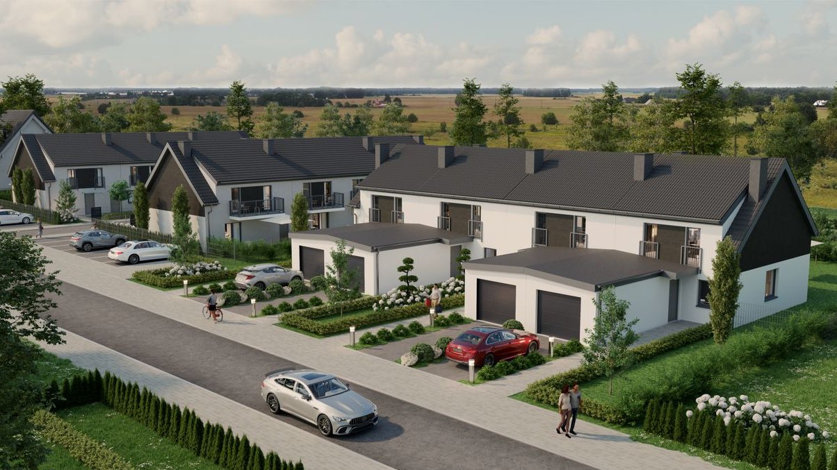 Mieszkania z garażami i dużymi ogrodami dostępne będą w następnym etapie sprzedaży.