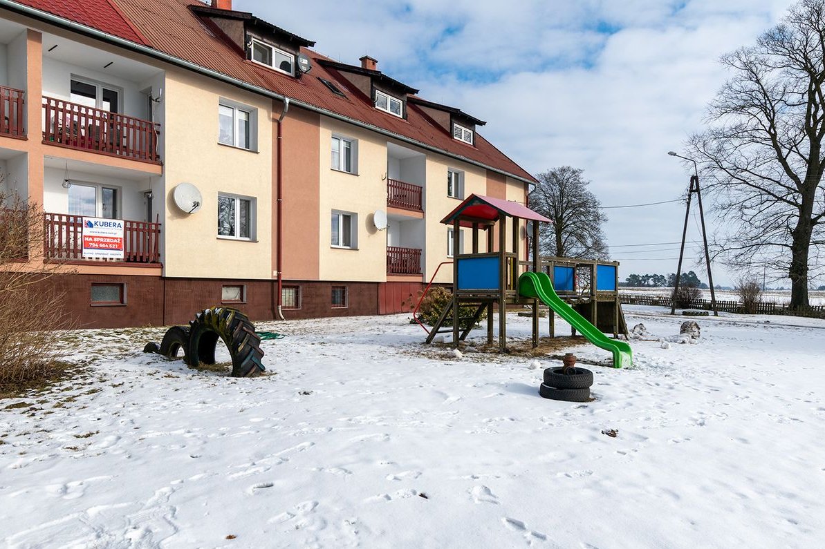Na sprzedaż wyjątkowe dwupokojowe mieszkanie z loggią, ogrodem i 2 garażami blaszanymi – Stara Wiśniewka, gmina Zakrzewo.