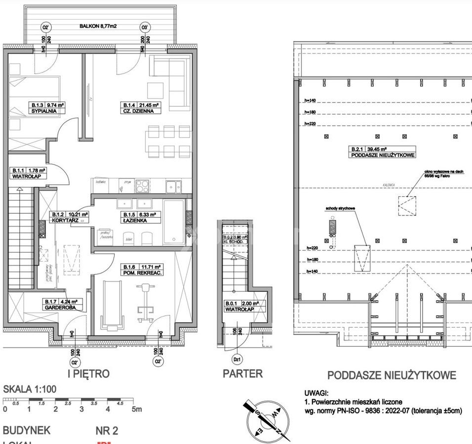 mieszkań na piętrze przynależą duże balkony o powierzchni 8,77 m².