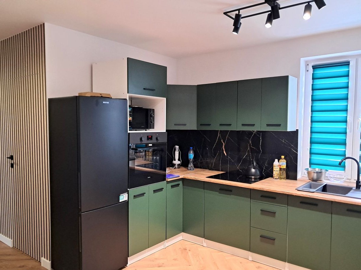 W cenie pozostają meble kuchenne wraz ze sprzętem AGD, kanapa (na życzenie klienta) oraz pralka z suszarką.
