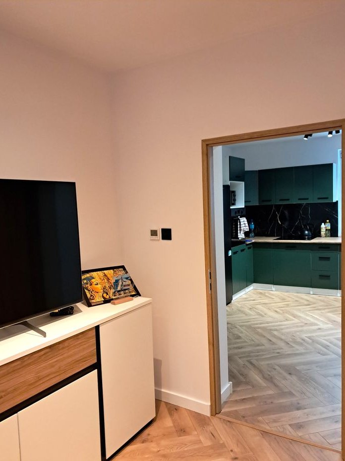 Nieruchomość składa się z salonu, sypialni, garderoby, dużej kuchni, widnej łazienki z kabiną prysznicową, przedpokoju.