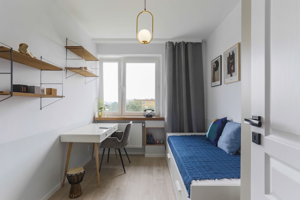 W pełni urządzone w rozkładane łóżka z szufladami, osobne materace, które łatwo wymienić, pojemne szafy w zabudowie, solidne biurka i wysokiej jakości fotele tapicerowane.