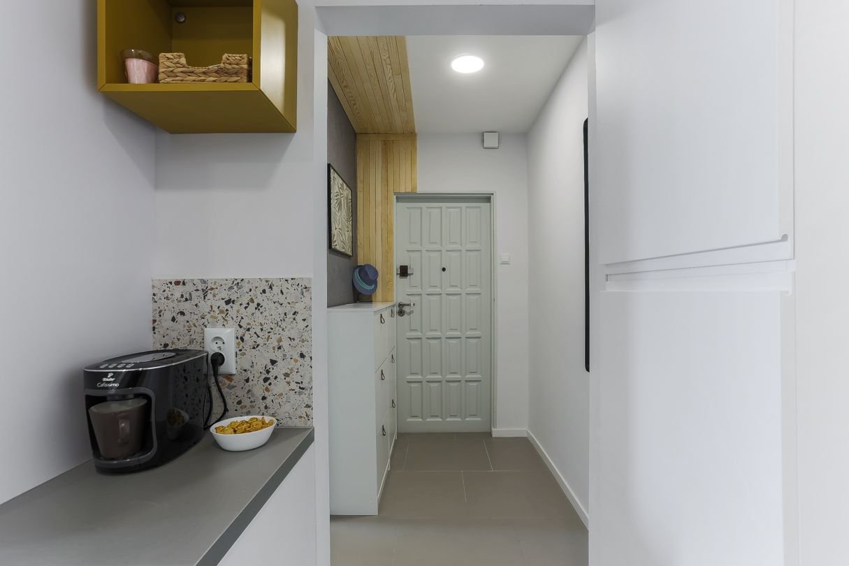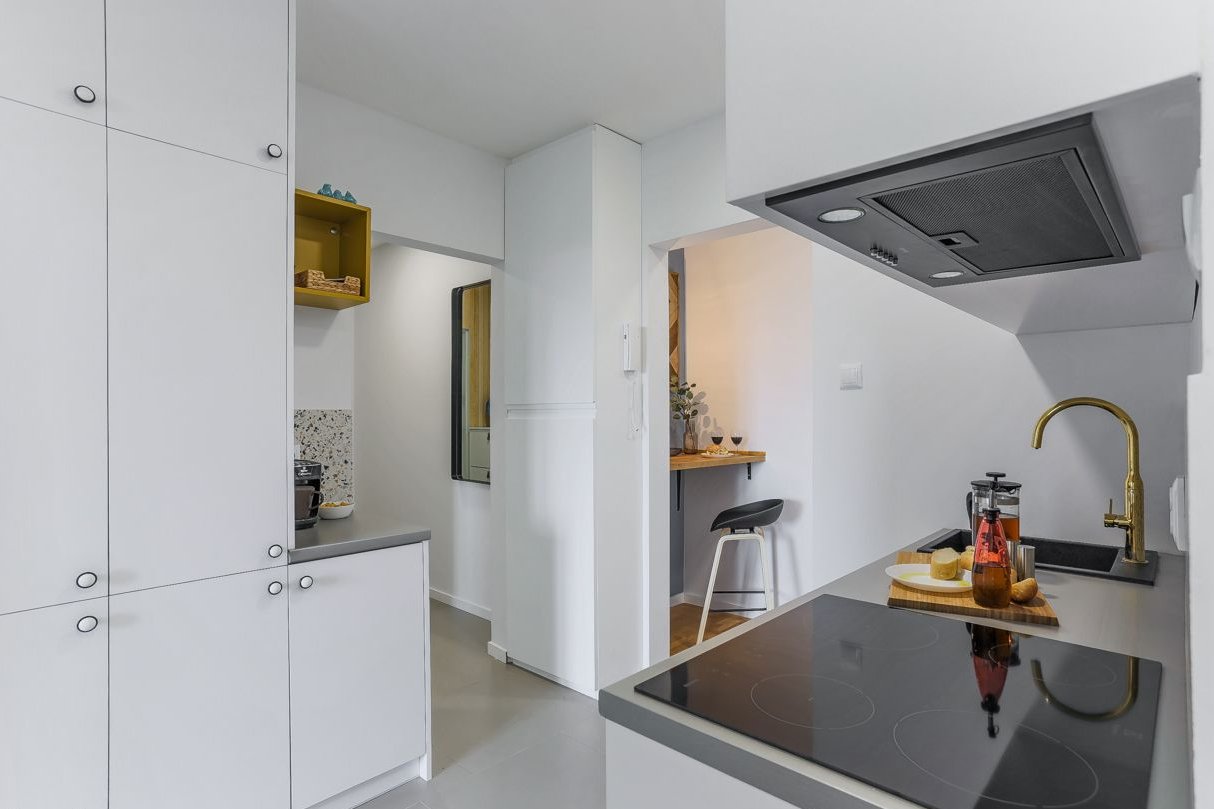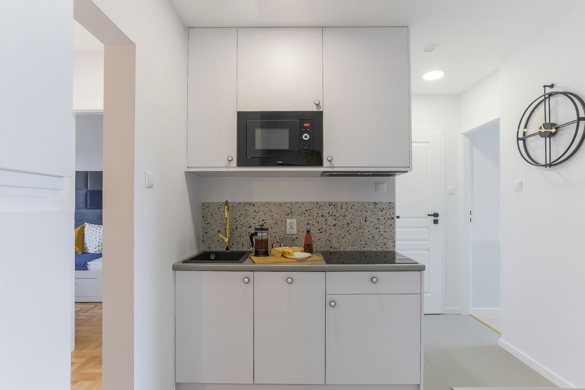 Nowoczesna kuchnia z pełnym wyposażeniem: zmywarka, płyta indukcyjna, kuchenka mikrofalowa, lodówka z zamrażarką, czajnik bezprzewodowy, ekspres do kawy, airfryer, wszystko co potrzebne, żeby zamieszkać.