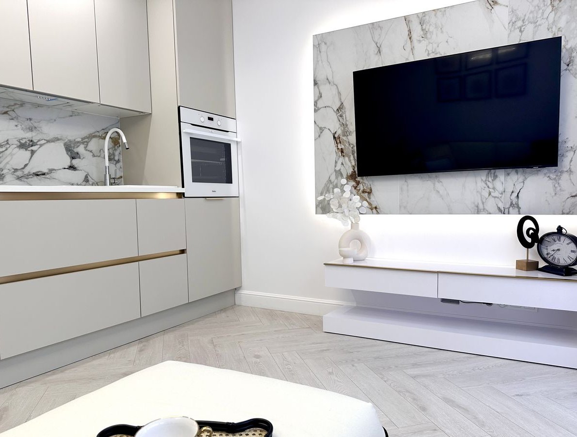 Aneks Kuchnia: meble kuchenne na wymiar w kolorze kaszmir, NOWE AGD w zabudowie (zmywarka, lodówka, piekarnik, płyta indukcyjna oraz okap/pochłaniacz), dużo miejsca do przechowywania.