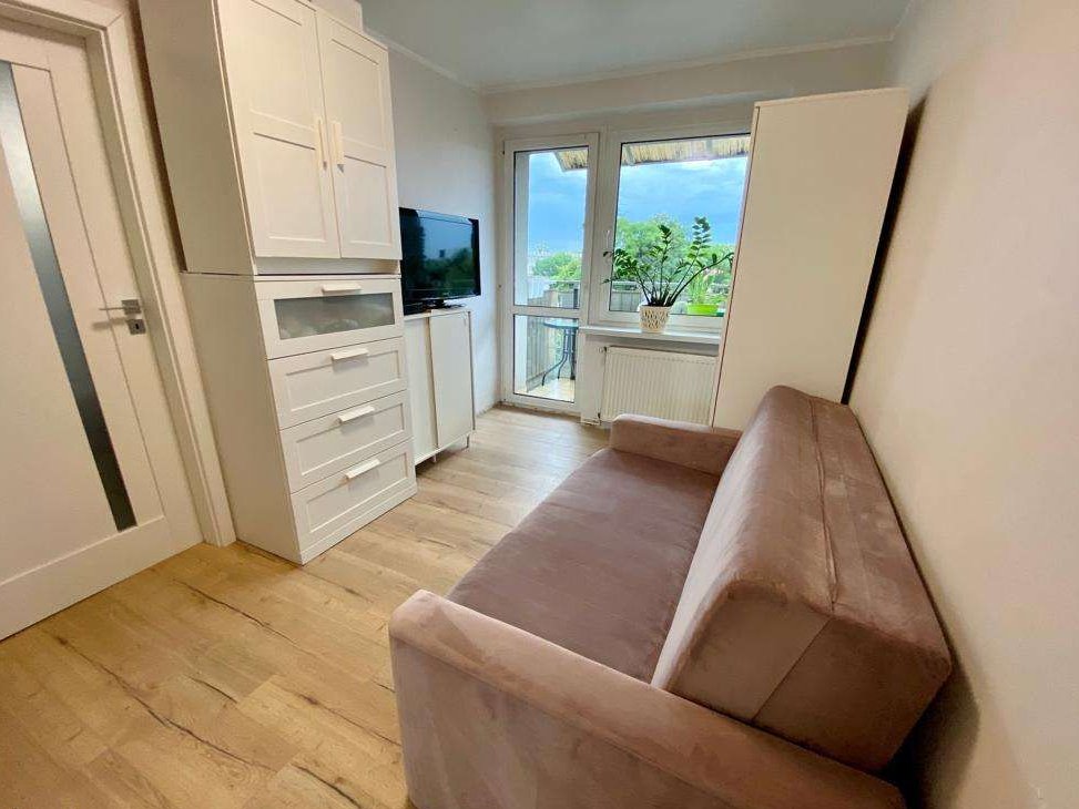 Mieszkanie wyposażone jest we wszystkie niezbędne sprzęty AGD i RTV jak lodówka, zmywarka, kuchenka indukcyjna, piekarnik, mikrofalówka, pralka, telewizor, duże szafy przesuwne. Dostęp do internetu światłowodowego.