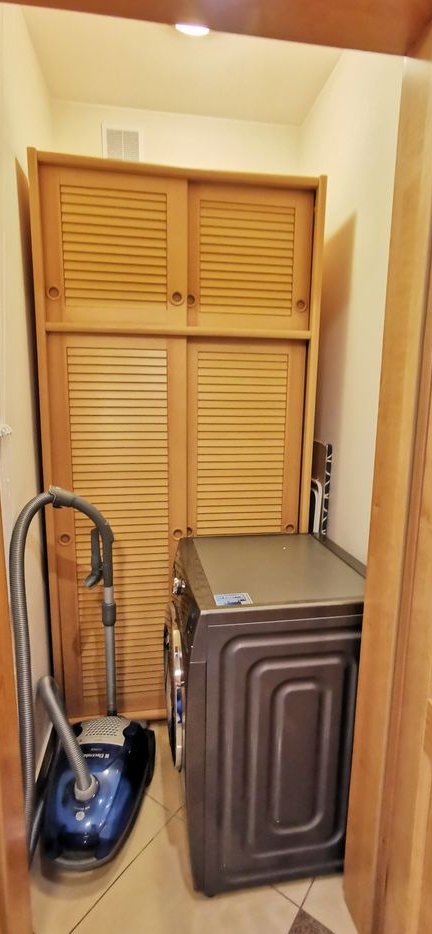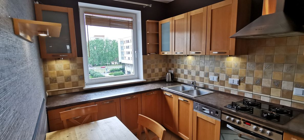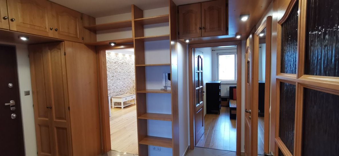 Ma wszystko, czego trzeba do zamieszkania od zaraz. Jest częściowo umeblowane, w kuchni są drewniane meble zrobione przez stolarza na wymiar, ma wszystkie potrzebne sprzęty (lodówkę, zmywarkę, kuchenkę, piekarnik, czajnik elektryczny, pralkę, odkurzacz). Dodatkowym atutem jest videodomofon.