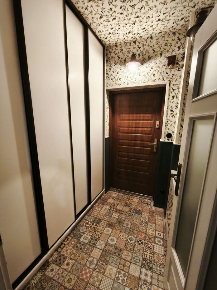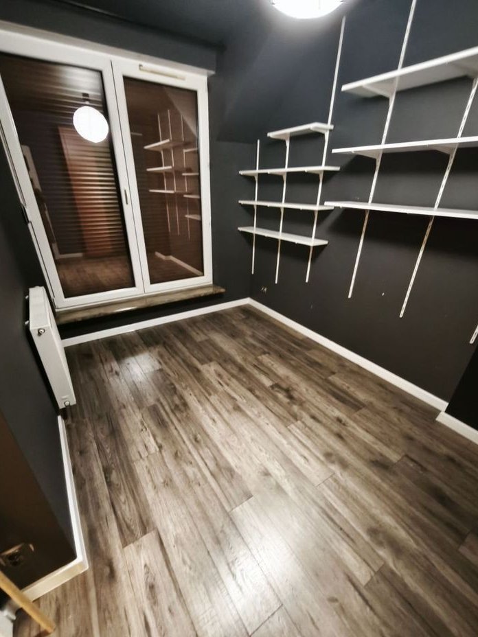 Wnętrze domu zachwyca przestronnością i przemyślanym układem. Wejście do budynku prowadzi do praktycznego wiatrołapu, wyposażonego w dużą, podświetlaną szafę z drzwiami przesuwnymi — idealne na sezonowe ubrania i akcesoria. Wnętrze oddzielone jest od reszty domu drzwiami, zapewniając prywatność i wygodę.