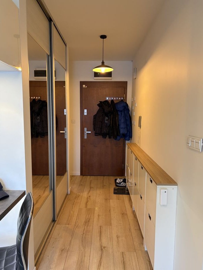 Mieszkanie zostało niedawno pomalowane a także zamontowane zostały nowe fronty w kuchni oraz wymieniono oświetlenie LED. Łazienka została zrobiona ok. dwa lata temu i jest wykonana w bardzo wysokim standardzie. W większości pomieszczeń zamontowane są lampy philips hue (dzięki czemu po dokupieniu bramki i zamontowaniu dodatkowych włączników - zostają w mieszkaniu) możliwe jest inteligentne sterowanie oświetleniem z aplikacji. Dodatkowo w mieszkaniu zostaje inteligentny zamek Tedee (otwieranie z aplikacji).