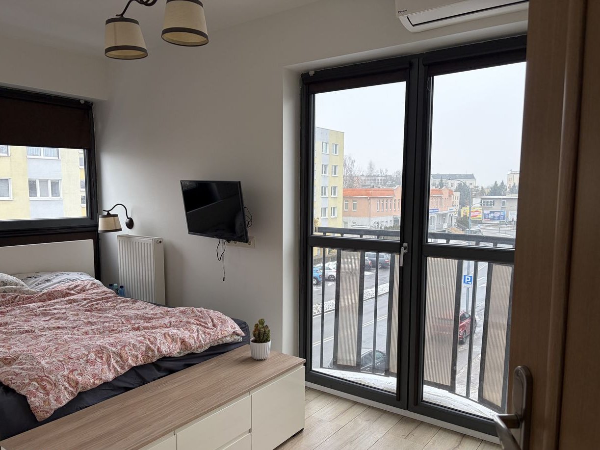 Przestronne mieszkanie o powierzchni 66,67 m² posiada 3 pokoje, nowoczesną kuchnię oraz dużą łazienkę. Mieszkanie jest w pełni umeblowane i wyposażone w sprzęt AGD, w tym pralkę i zmywarkę. Dodatkowym atutem są balkony oraz klimatyzacja, co zapewnia komfort przez cały rok. Mieszkanie składa się z salonu z wydzielonym aneksem kuchennym, dwóch osobnych pokoi, przedpokoju oraz dużej łazienki. Pokoje są przygotowane pod sypialnię (łóżko podwójne) i pokój dziecięcy (łóżko piętro z biurkiem). Wszystkie pokoje mają szafy i szafki wykonane na wymiara w każdym pokoju jest balkon.