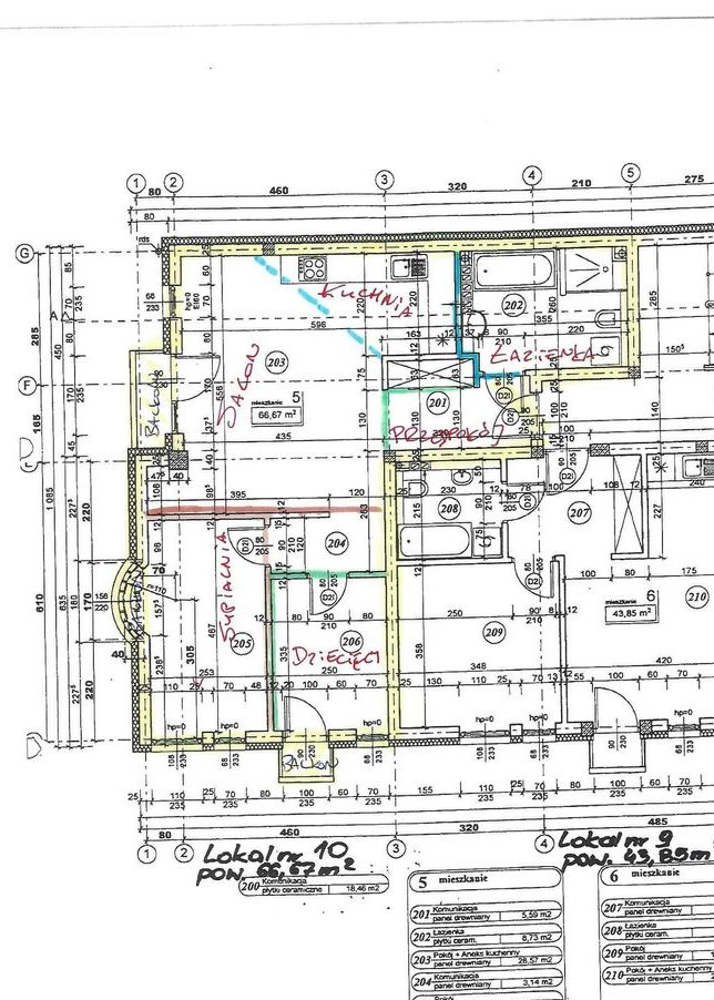 Salon wyposażony w router, telewizor z soundbarem, kanapę (rozkładaną), stolik kawowy (z półkami w środku, wiszącą szafkę rtv i stół z krzesłami oraz sporą liczbę szafek. W części salonowo-kuchennej znajduje się dodatkowy stół z trzema miejscami siedzącymi. W sypialni znajduje się duża szafa, szafka nocna oraz duże łóżko (z materacem i dużą skrzynią), telewizor a także rolety. W pokoju dziecięcym jest piętrowe łóżko (z materacem), biurko, dwie duże szafy i szafki oraz rolety (inteligente - możliwość ustawienia otwierania czy zamykania o konkretnej godzinie oraz sterowanie z aplikacji). W przedpokoju jest bardzo duża szafa oraz szafki na buty.