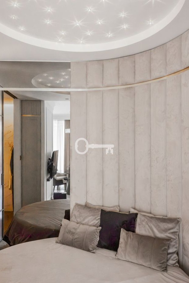* cześć sypialna z oryginalnym okrągłym łóżkiem,