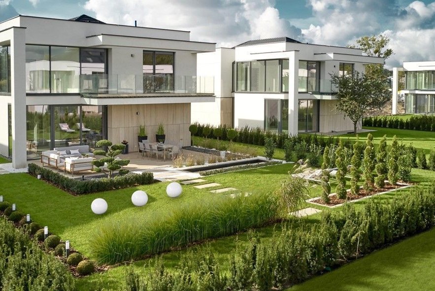 Projekty domów cechują modernistyczne bryły, a elegancka kolorystyka w odcieniach bieli, szarości i jasnego beżu nadaje im wyjątkowego charakteru. Rezydencje zostaną wykończone naturalnym kamieniem, a duże przeszklenia umożliwią przyszłym właścicielom cieszenie się nieograniczoną przestrzenią i naturalnym światłem. Otaczające ogrody będą idealnym miejscem do komfortowego wypoczynku.