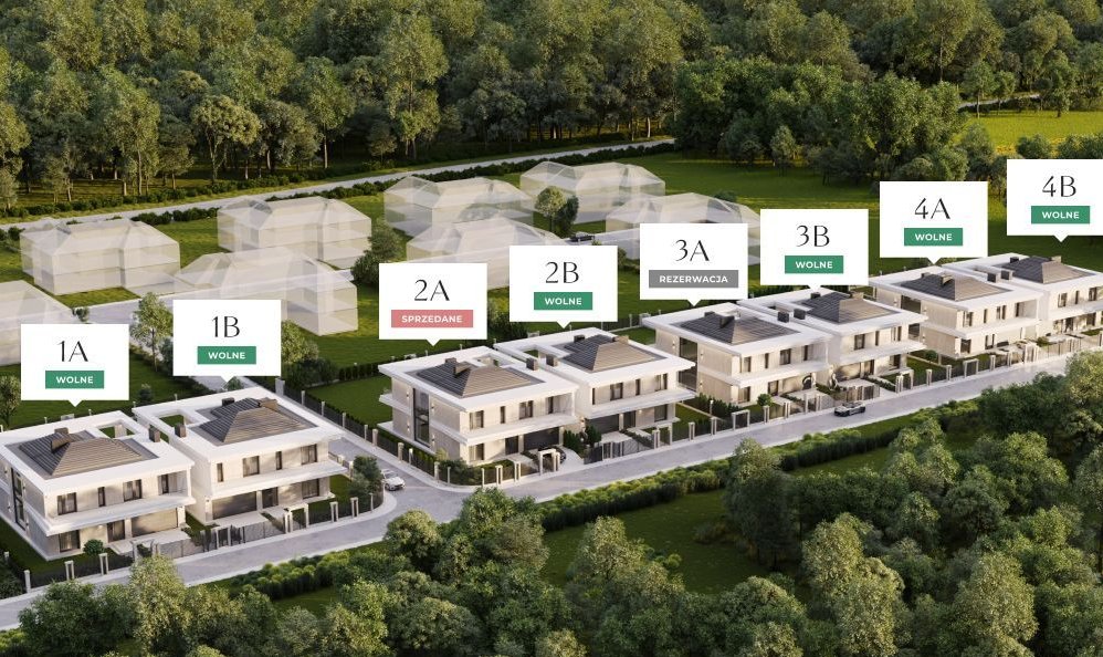Domy są położone przy kameralnej drodze wewnętrznej, dzięki czemu panuje tu cisza i bezpieczeństwo.