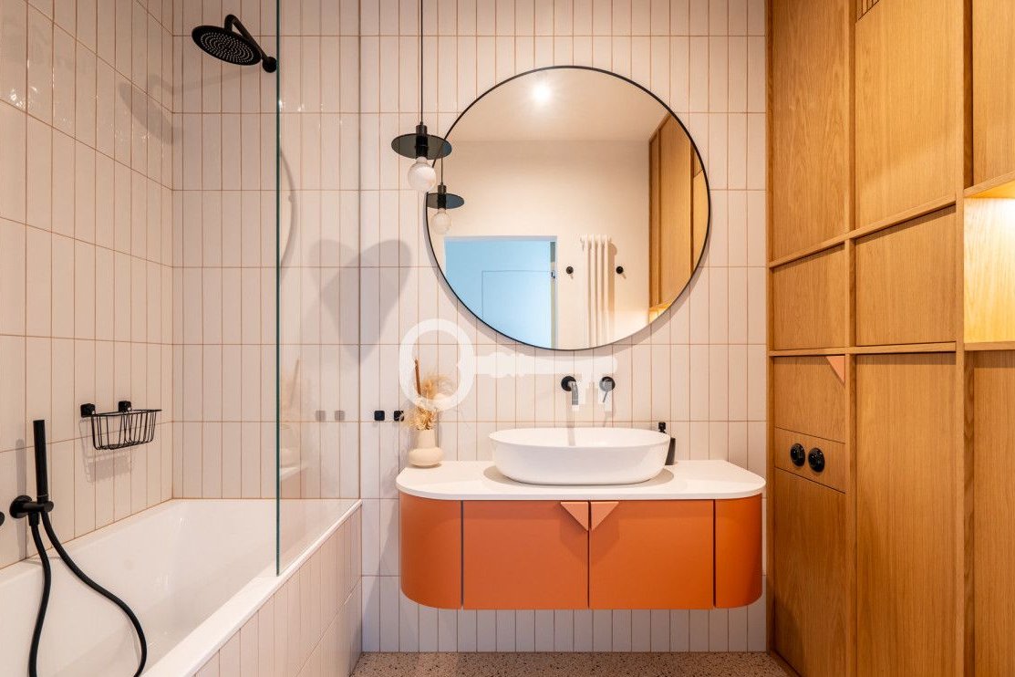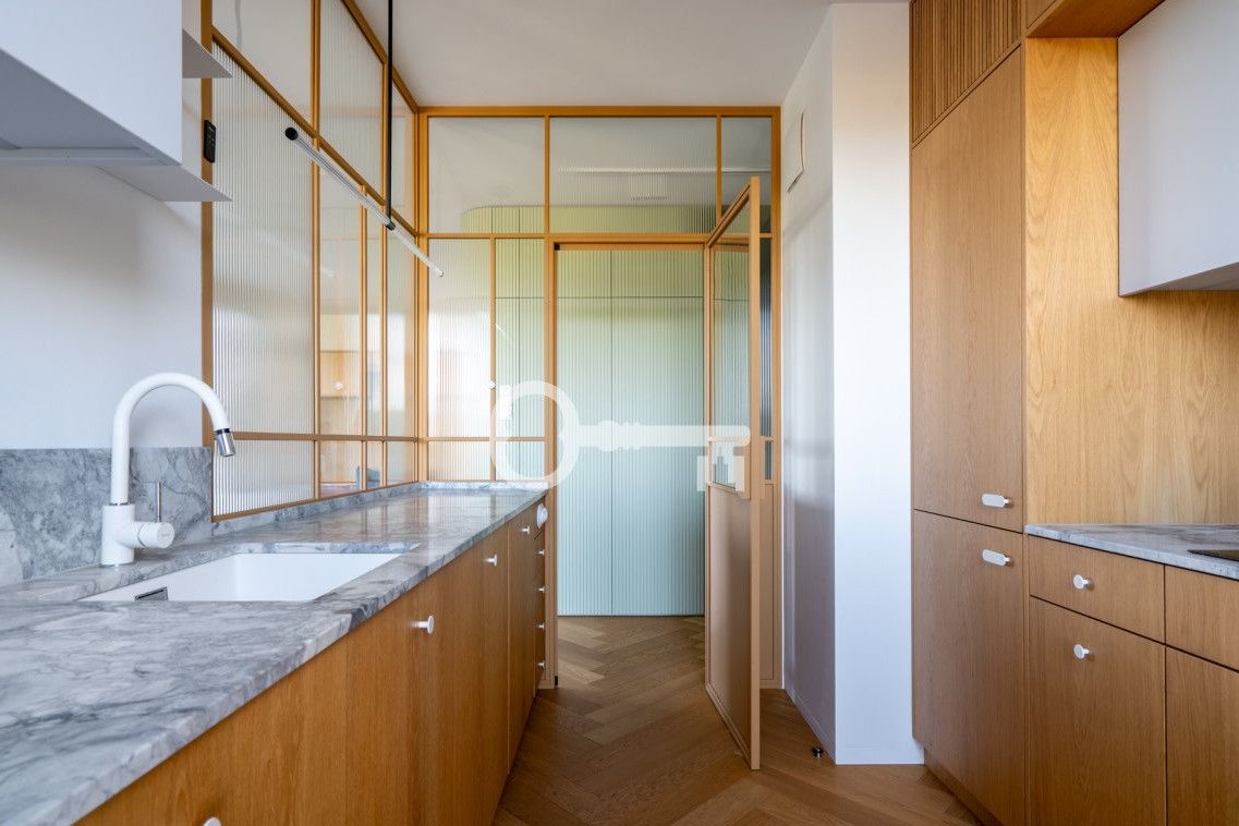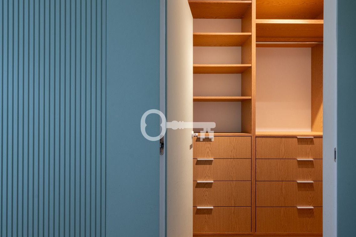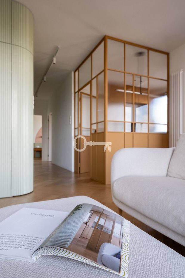 The corner apartment is lit from the west and north by large, high-quality windows. The west-facing terrace offers unique views of the sunset over the moraine hill of the Tri-City Landscape Park and allows you to observe maritime traffic in the port areas. The layout was primarily dictated by convenience and comfort - a separate kitchen, two wardrobes, two parking spaces in the garage, location on the quiet side of the building away from busy streets. The high-quality materials used to finish this apartment go hand in hand with the atmosphere of Gdynia itself and the Portova investment (veneer rounded shapes, modernist material references), while bringing in pleasant and warm colors that further enhance the comfort of living. The entire project was designed by the renowned EM2 - Interior Design studio, and its implementation has been recognized on the market, for example through a photo shoot of the premises in & Living magazine.
