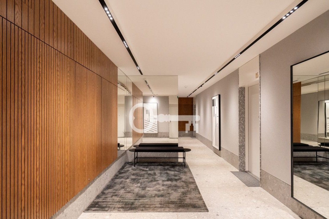 The interiors feature elegant staircases and a representative entrance with a reception area. A private relaxation area has been created for residents, with a gym, saunas, a club room, a coworking space, and a kids' room. On the roof of the landmark building, there is a viewing point accessible only to residents.