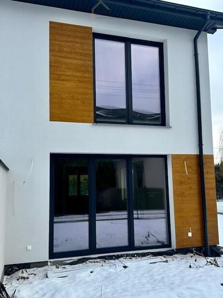 Do sprzedania atrakcyjny dom dwurodzinny wybudowany w nowoczesnym stylu. Wnętrze oferuje funkcjonalny i dobrze zaprojektowany układ pomieszczeń. Wejścia główne zostały w praktyczny sposób przesłonięte nowoczesną, płaską formą zadaszenia. Parter to efektownie doświetlona strefa dzienna, w której zaprojektowano wygodny salon z kominkiem i wyjściem do ogrodu, jadalnię mieszczącą rodzinny stół w pobliżu okna oraz funkcjonalnie zorganizowaną kuchnię. Kuchnia może być otwarta lub zamknięta. Dużym atutem jest łazienka z prysznicem. Mieszkańcy na piętrze mają do dyspozycji sypialnię główną z garderobą i oraz dwa pokoje dla dzieci. W części środkowej przewidziano naturalnie doświetloną łazienkę. Na parterze można wygospodarować dodatkowy pokój. Dużym atutem jest funkcjonalny strych z możliwością adaptacji na 4 sypialnię z garderobą/ pracownię/siłownię, itp.