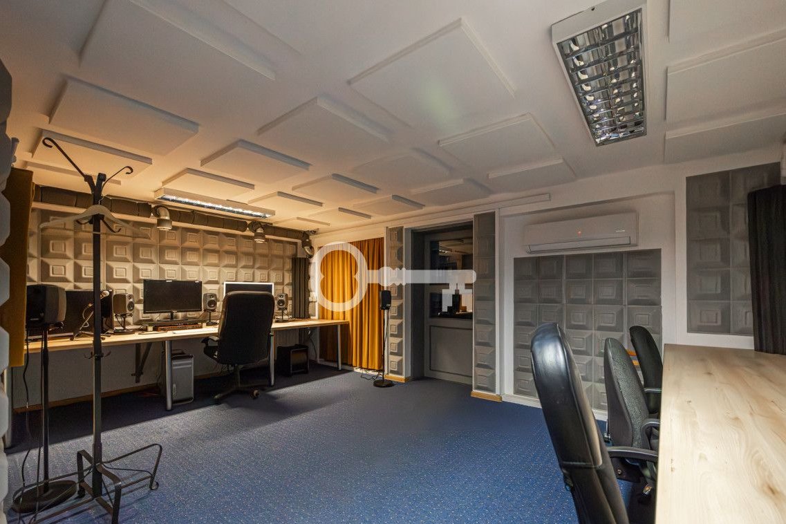 Interiors adapted for office purposes and sound recording requirements. Broadband internet connections. Electronic control of access to the premises. Upgraded energy class to power computer equipment. All rooms air-conditioned. Alarm system throughout the building.