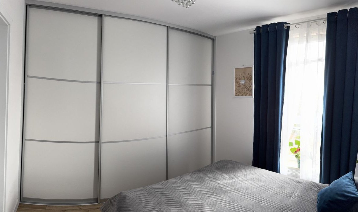 • Sypialnia – 11,34 m² z ogromną szafą w zabudowie,