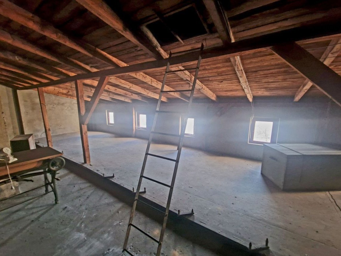 Na sprzedaż 50% udziałów w kamienicy o łącznej powierzchni 550 m² wraz z przybudówką mieszkalną o powierzchni 27 m². Przedmiotem sprzedaży jest prawa strona budynku, co odpowiada około 227 m² powierzchni użytkowej oraz całej przybudówce.