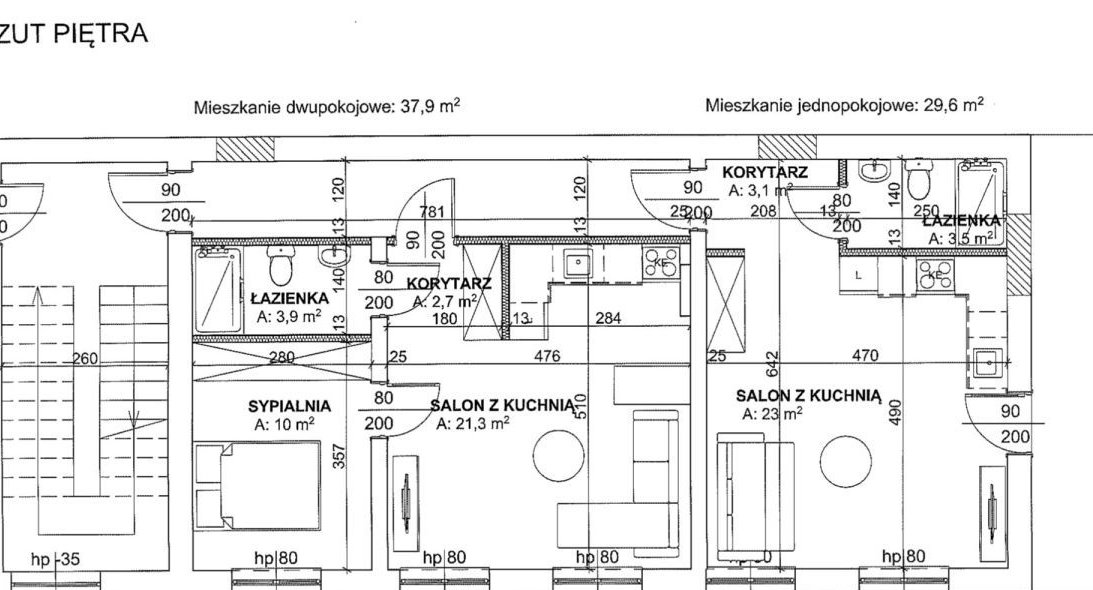 Pierwsze piętro: jedno duże mieszkanie,