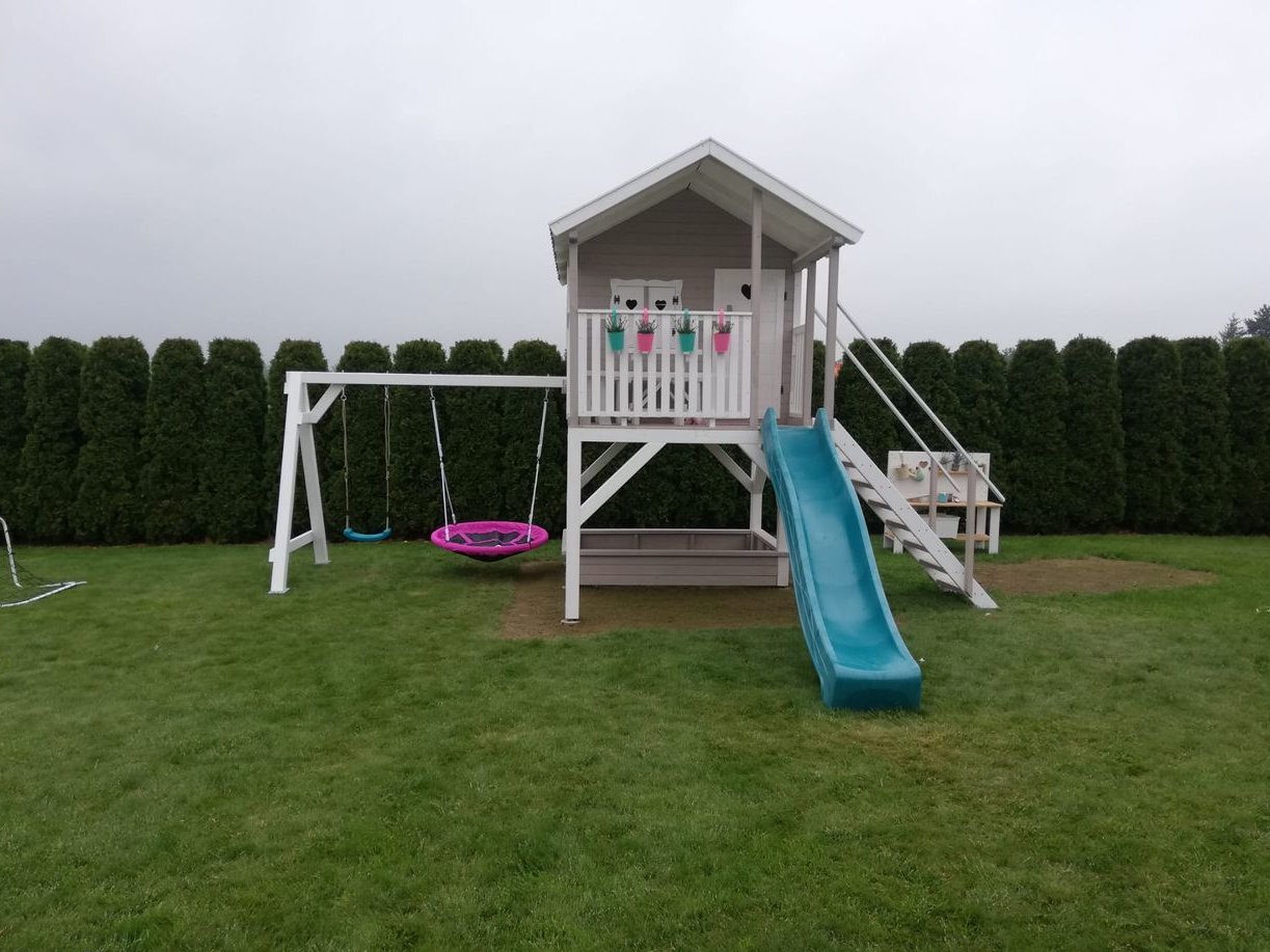 teren ładnie zagospodarowany obsadzony dookoła wysokimi thujami , co zapewnia dużą prywatność i ładną zieleń