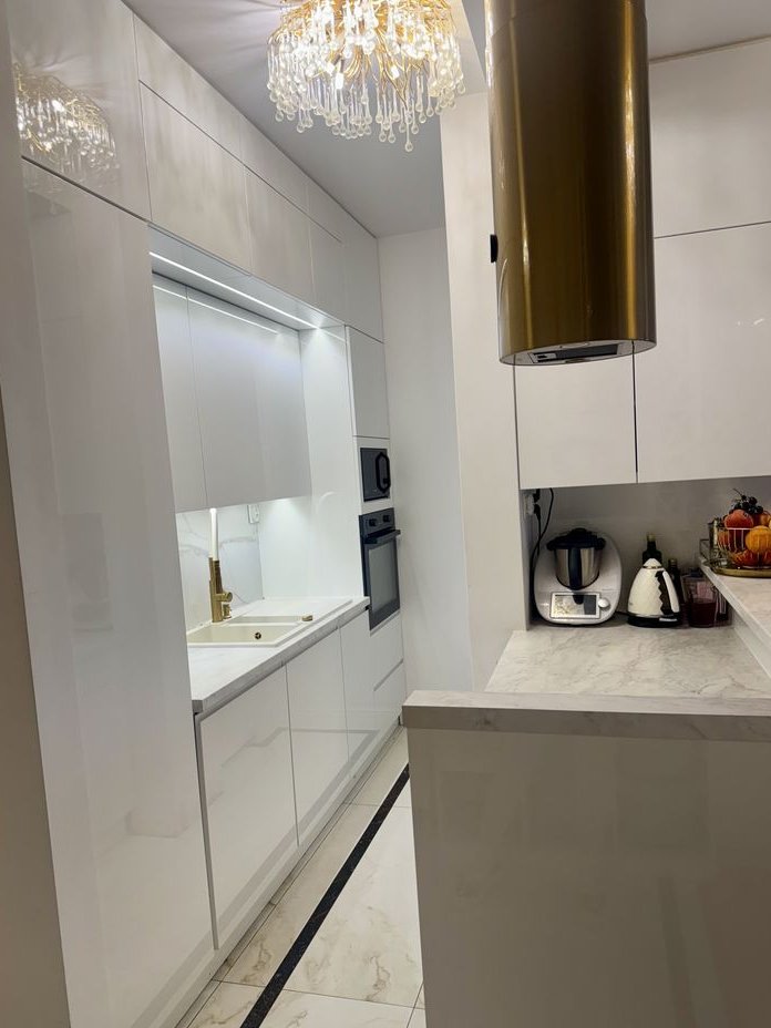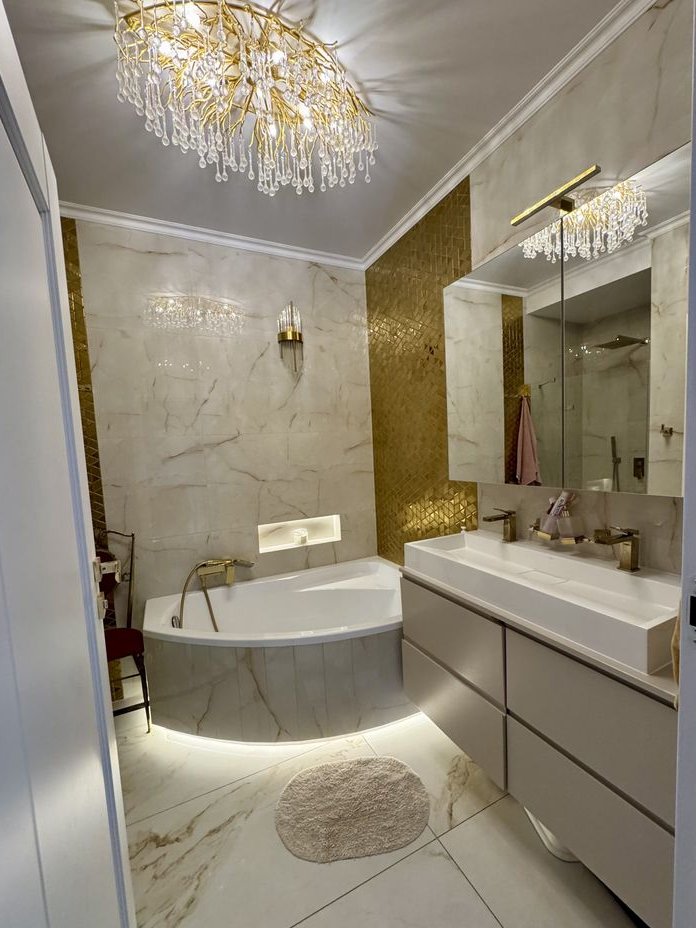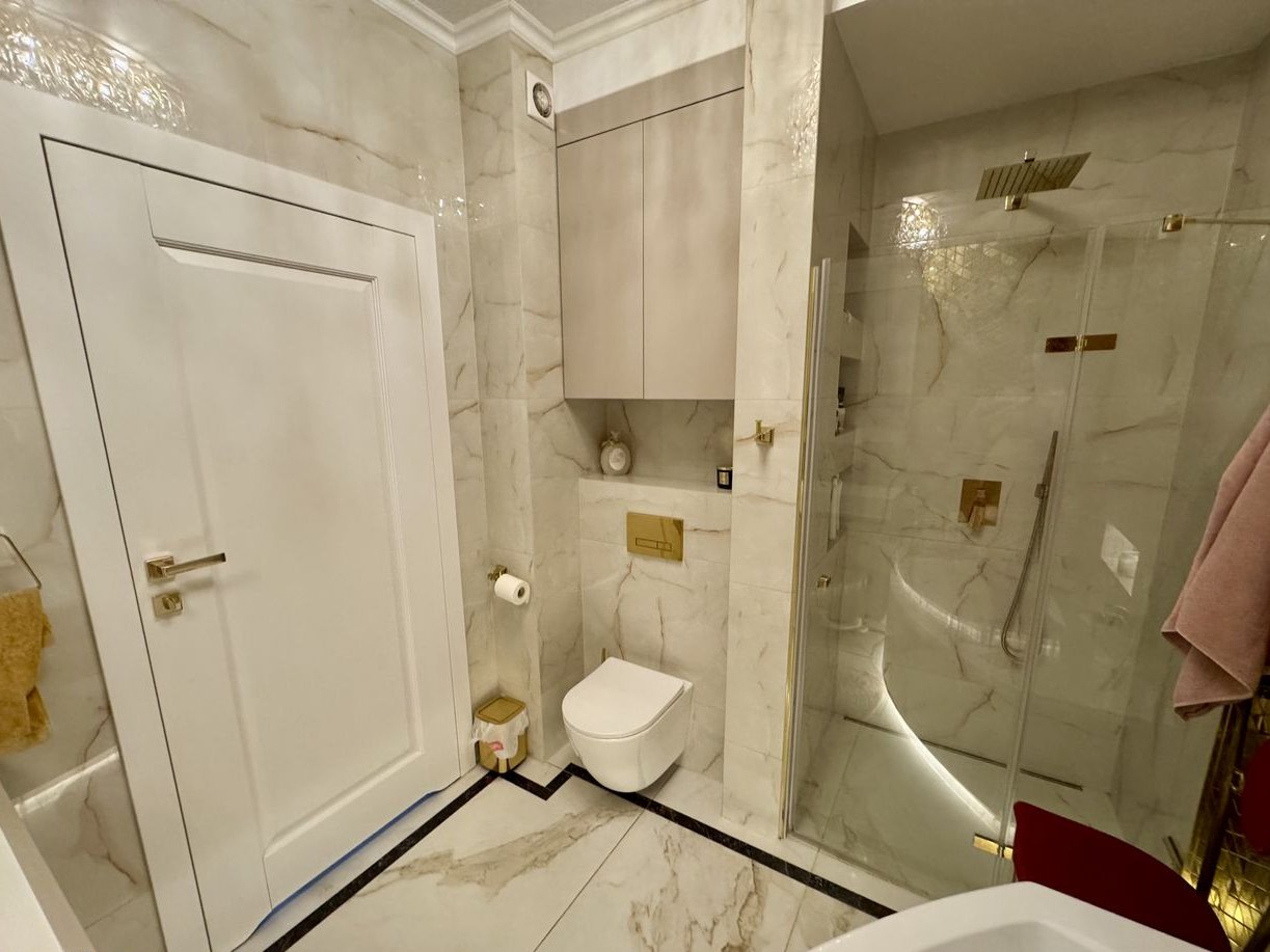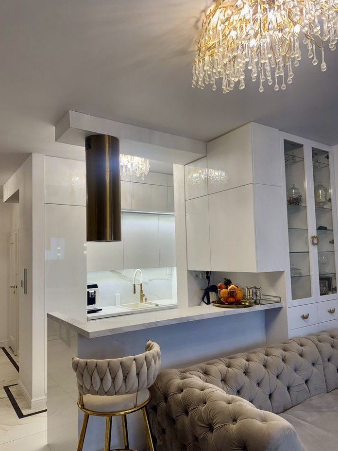 Wnętrze segmentu zostało zaprojektowane z niezwykłą dbałością o każdy detal, oferując pełne umeblowanie i doskonale przemyślany rozkład pomieszczeń. Zostały przeprowadzone indywidualne zmiany w projekcie deweloperskim w celu zwiększenia przestrzeni na salon oraz jadalnię. Obfitość naturalnego światła zapewniają duże okna. Wysokie standardy wykończenia obejmują stolarskie zabudowy na wymiar, subtelne sztukaterie, designerskie oświetlenie (stylowe żyrandole, kinkiety) oraz złote akcenty, tworzące spójną, ponadczasową i elegancką estetykę.