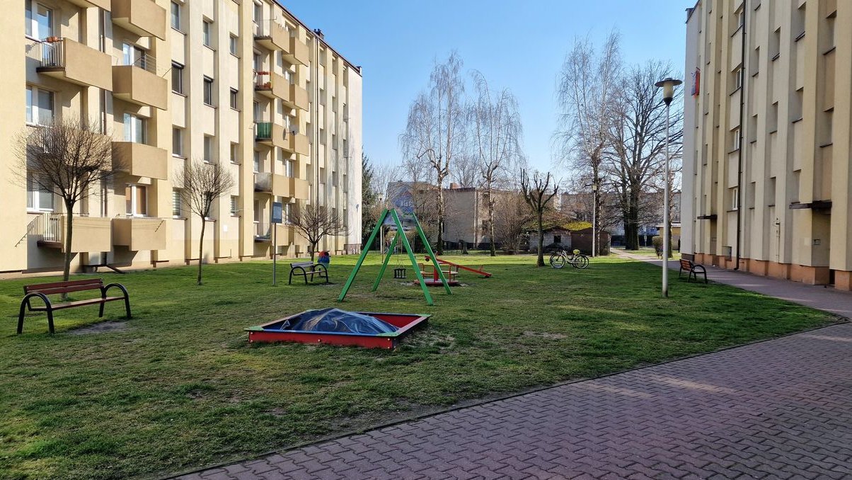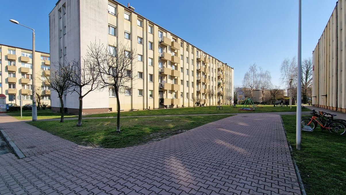Mieszkanie położone jest w bardzo dobrze skomunikowanej części miasta. W pobliżu znajdują się liczne usługi, przystanki autobusowe, sklepy (Biedronka, Aldi), przedszkole oraz szkoły średnie. Przed budynkiem znajdują się tereny zielone z placem zabaw oraz ogólnodostępne miejsca parkingowe.
