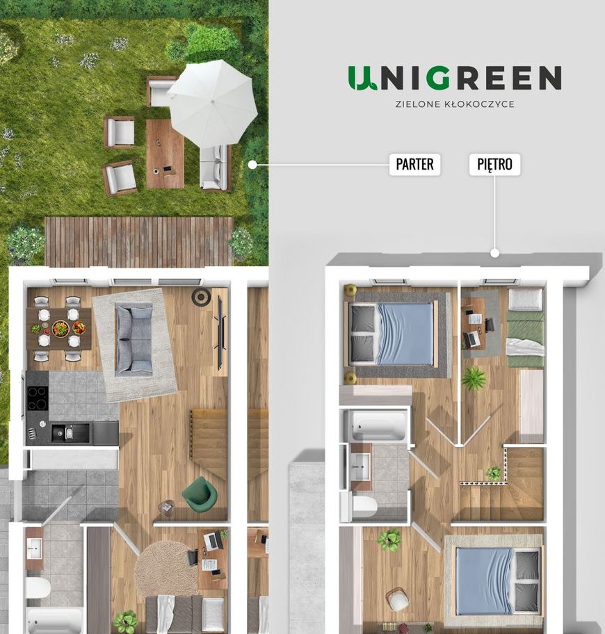 Oferowana nieruchomość znajduje się na terenie kameralnej inwestycji Zielone Kłokoczyce składającej się z 3 budynków dwulokalowych, każdy z lokali mierzy po 86,31 m2.