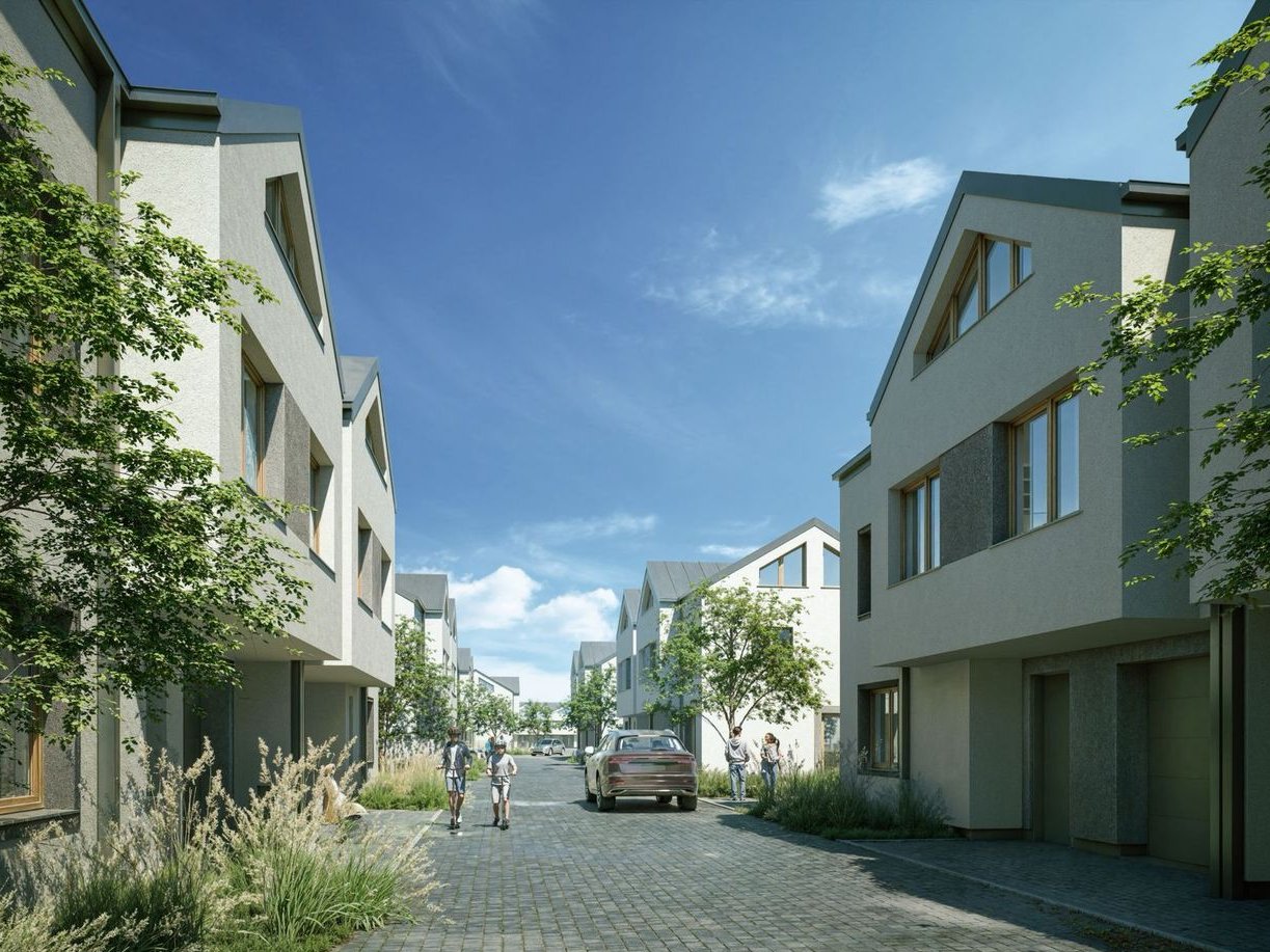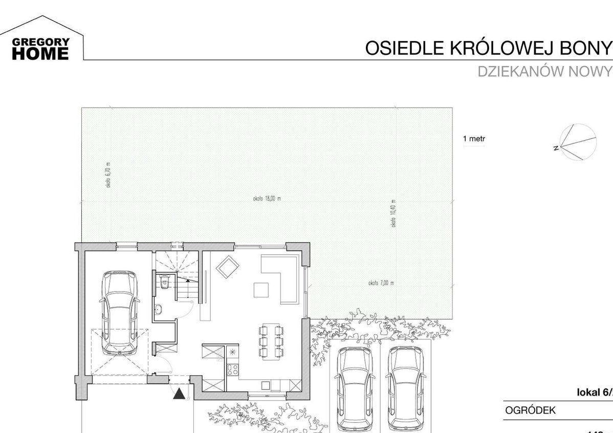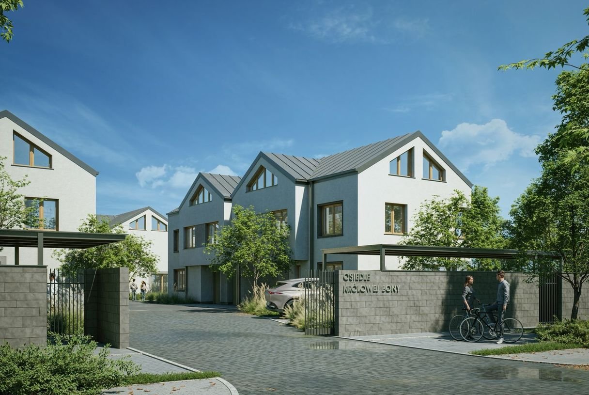 Każdy z domów będzie miał ogrodzony ogród z własną furtką od strony ulicy Królowej Bony stanowiącej wewnętrzny ciąg pieszo jezdny wykończony kostką brukową pomiędzy budynkami.